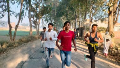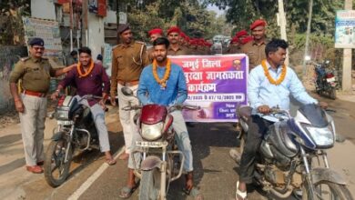 रैली में शामिल कर्मी पहले मतदान-फिर जलपान का नारा लगा रहे थे।
