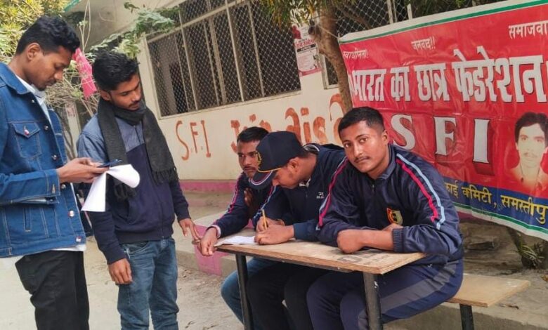 समस्तीपुर // भारत का छात्र फेडरेशन एसएफआई के द्वारा समस्तीपुर कॉलेज समस्तीपुर में दूसरे दिन भी सदस्यता अभियान छात्र नेता विकास कुमार,राजा कुमार एवं रौशन कुमार के नेतृत्व में चलाया गया । बता दें कि शहीद लाल बहादुर राय ने इसी माह जनवरी 1981 में अपनी शहादात दिए थे। आगामी 21 जनवरी को इनके शहादात स्मृति में संकल्प सभा एसएफआई के छात्रों द्वारा किया जा रहा है। इसी कार्यकर्म की सफलता को ध्यान में रखते हुए संगठन लगातार सदस्यता अभियान चला रही है। इस दौरान छात्रों ने छात्र नेताओं से कैंपस में छात्रों को हो रही समस्या जैसे सभी विषयों की पढ़ाई,कुछ विभागाध्यक्षों द्वारा छात्रों को समय से नहीं पढ़ाने,कैंपस में बढ़ते हुए भ्रष्टाचार आदि से अवगत कराया।जिस पर छात्र नेताओं ने प्रथम सेमेस्टर परीक्षा के बाद समाधान नहीं मिलने पर संघर्ष करने की बात कही गई। मौके पर मोहित कुमार, रंजीत कुमार,सोहन कुमार, ललन कुमार,सूरज वर्मा,साहिल कुमार, गोविन्द कुमार, पंकज कुमार, शशि शेखर, पूजा कुमारी, अंशु कुमारी, वंदना कुमारी,राकेश कुमार सहित दर्जनों छात्र छात्राएं संगठन की सदस्यता ग्रहण किए।