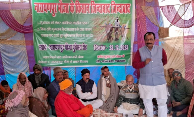 किसानों के भूमि अधिग्रहण की मुआवजा को लेकर अनिश्चितकालीन धरना के समर्थन में शामिल हुए प्रभात कुमार पांडेय
