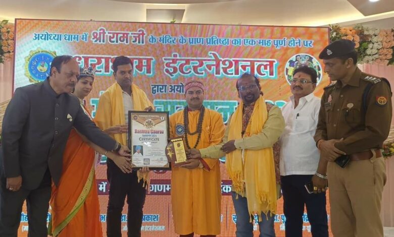 भगवान श्री राम की जन्म भूमि अयोध्या के होटल रॉयल हेरिटेज में धराधाम इंटरनेशनल द्वारा आयोजित भव्य कार्यक्रम में ग्लोबल विश्वविद्यालय अमेरिका के मानद कुलपति आदरणीय सौहार्द शिरोमणि संत श्री डॉ. सौरभ जी महाराज और अयोध्या प्रशासन के पुलिस अधीक्षक श्री धर्मेंद्र यादव जी के गरिमामयी उपस्थिति में राष्ट्र लेखक, भारत साहित्य रत्न डॉ. अभिषेक कुमार जी को राष्ट्र गौरव सम्मान- 2024 से विभूषित किया गया।