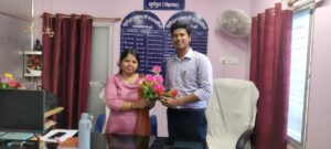 सूर्यपुरा में योगदान करने पहुंचे प्रशिक्षु बीडीओ का निवर्तमान बीडीओ वीणा पाणी ने बुके भेट कर स्वागत किया और प्रभार दिया।