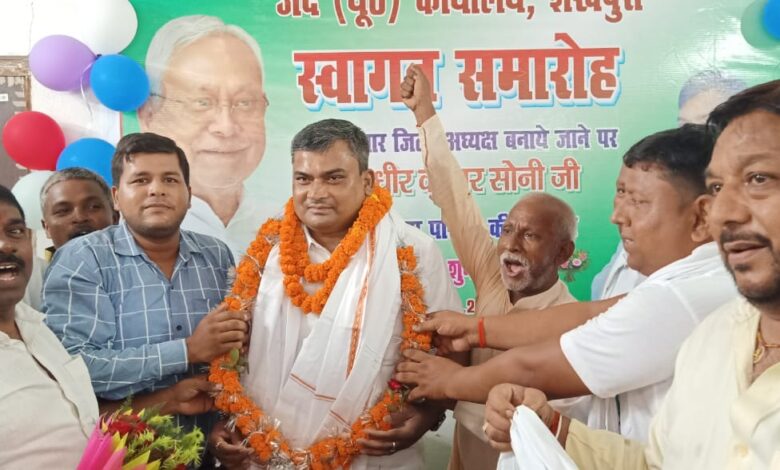 उन्होंने कहा कि पूरे शेखपुरा विधानसभा में पार्टी की मजबूती के लिए लगातार काम करता रहूंगा। रणधीर कुमार सोनी जदयू के जिलाध्यक्ष बनने से पार्टी संगठन के लोगों में खुशी का माहौल है।
