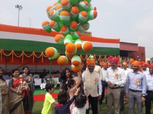 इस अवसर पर महिला कल्याण संगठन की अध्यक्षा श्रीमती शालिनी चौधरी एवं मंडल रेल प्रबंधक द्वारा स्वतंत्रता के संदेश के प्रतीक के रूप में आसमान में गुब्बारे छोड़ें।