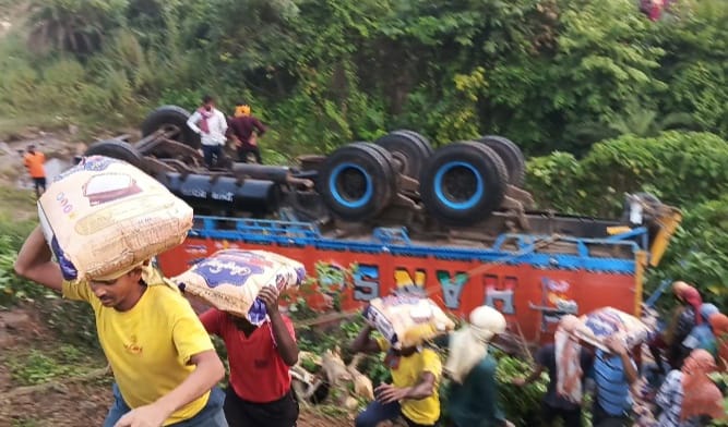 हांलाकि वाहन मालिक ने बिखरे पड़े चावल को एक ट्रेक्टर की मदद से सुरक्षित स्थान पर ले गए । शैष बचे चावल को मंगलवार की सुबह अन्य वाहनों पर लोडिंग कर ले जाया गया है ।