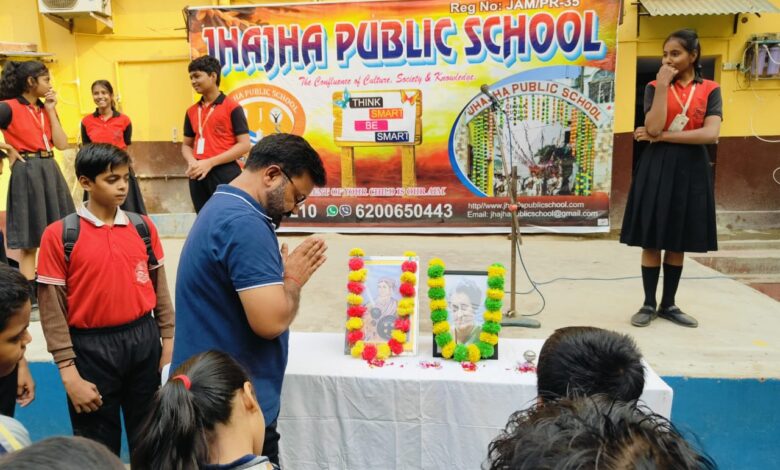 आज झाझा पब्लिक स्कूल में बड़े ही हर्षोल्लास के साथ 19 नवंबर 2024 को, रानी लक्ष्मीबाई एवं श्रीमती इंदिरा गांधी जी की जयंती के उपलक्ष्य में स्कूल के सभी शिक्षकों एवं छात्रों ने फूल अर्पित कर आत्मा शांति के लिए प्रार्थना की।