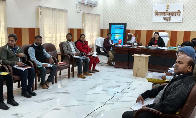 पदाधिकारी जमुई अभिलाषा शर्मा, ने समाहरणालय,स्थित अपने कार्यालय कक्ष में विभिन्न पदाधिकारियों के साथ की समीक्षात्मक बैठक।