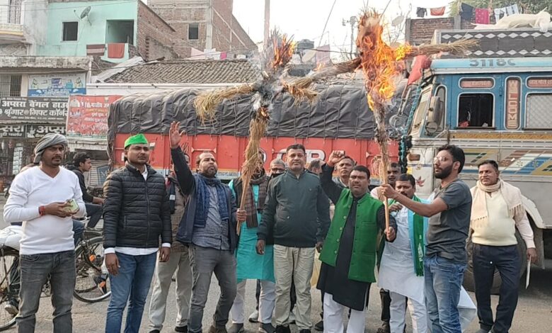 राजद के बैनर तले संयुक्त रूप से अमित शाह के पुतला दहन करते पुतला दहन में शामिल सुबोध यादव राजद, एससी, एसटी के जिला अध्यक्ष उमेश पासवान,