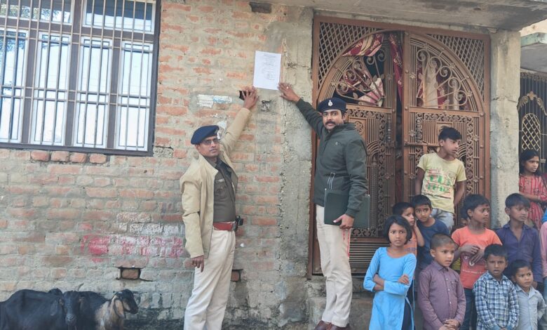 शराब कांड अभियुक्त के घर बैंड बाजे के साथ पुलिस ने चिपकाया इश्तहार