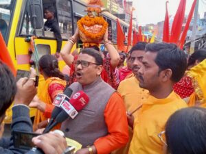 समस्त गायत्री परिवार कुरथाद्वारा बाजार में भव्य कलश यात्रा, गायत्री माता के प्राण प्रतिष्ठा हेतु निकाला गया।