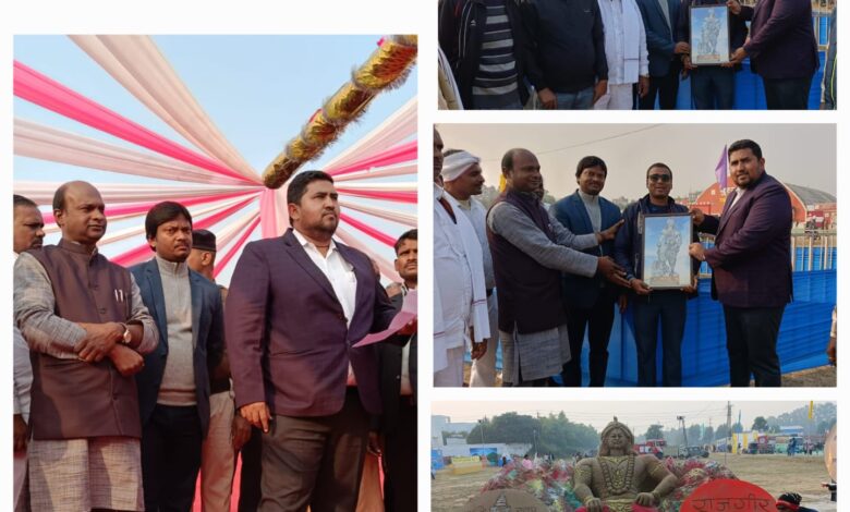 राजगीर महोत्सव में सम्राट जरासंध की आकृति बनाने वाले सैंड आर्टिस्ट मधुरेंद्र को किया गया सम्मानित
