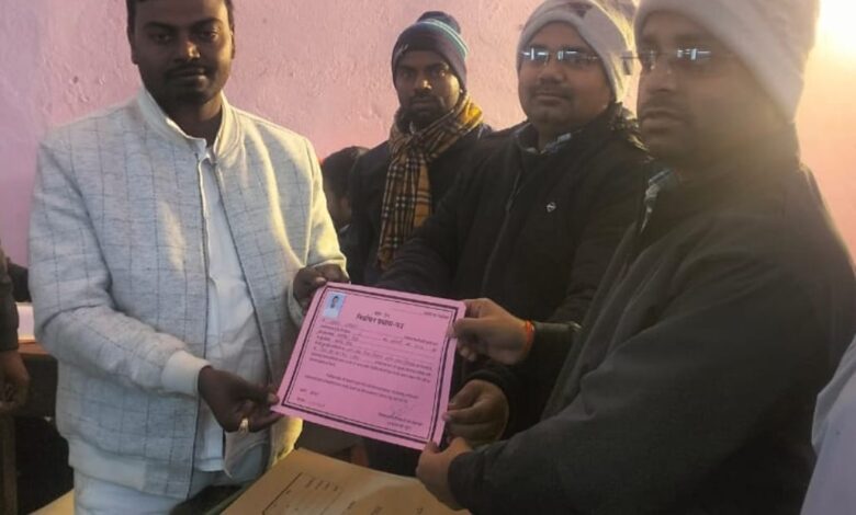 कमलेश सिंह के समर्थकों में जोश देखने को मिला जैसे ही सर्टिफिकेट लेकर गेट से बाहर निकले उनके समर्थको ने उनको कंधे पर उठाकर नारा लगाते हुए भव्य स्वागत किया।