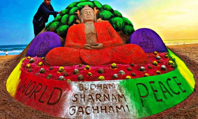 सैंड आर्टिस्ट मधुरेंद्र ने बुद्धम शरणं गच्छामि कलाकृति के जरिए दिया विश्व शांति का संदेश