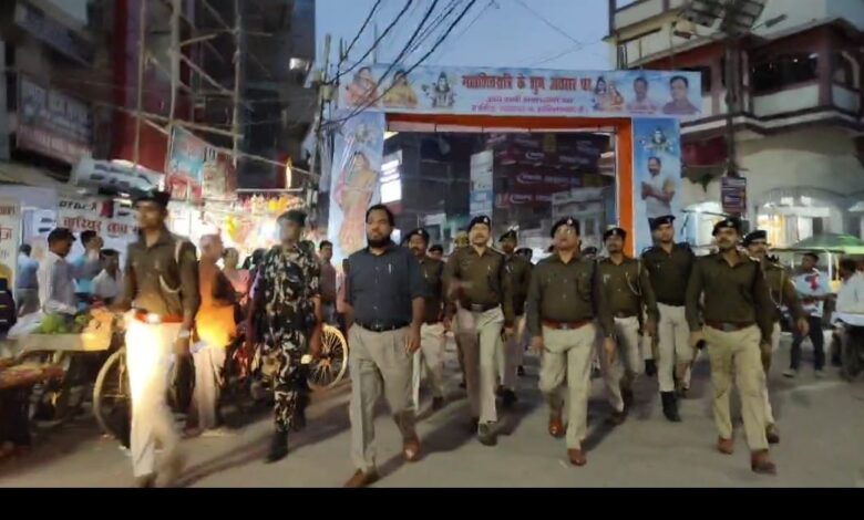 फ्लैग मार्च पातालेश्वर मंदिर से शुरू होकर मस्जिद चौक पहुंचा। मस्जिद चौक से गुदरी रोड होते हुए राजेंद्र चौक पहुंचा। फिर राजेंद्र चौक से अनवरपुर चौक होते हुए अक्षयवट राय स्टेडियम पहुंचा।