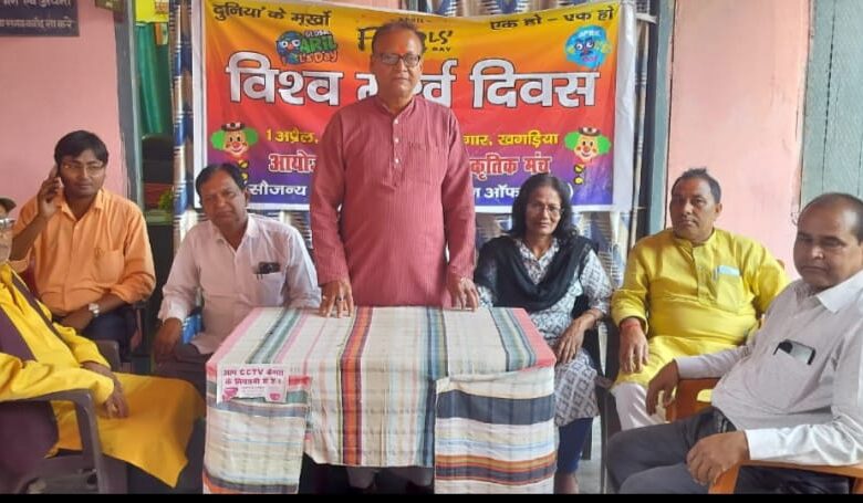 खगड़िया। अरुणोदय सांस्कृतिक मंच के तत्वावधान में स्थानीय रेड क्रॉस सभागार में आगामी 01 अप्रैल को विश्व मूर्ख दिवस मनाने का निर्णय लिया गया। आहूत बैठक की अध्यक्षता फ़रकिया स्टेट महामूर्ख सम्मेलन के संस्थापक एवं वरिष्ठ पत्रकार अरुण वर्मा ने की।