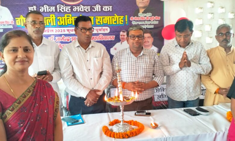 दावथ( रोहतास)। राष्ट्रवादी विचार मंच के तत्वाधान में देश के श्रेष्ठ सम्मानों में से एक पद्मश्री पुरस्कार से सम्मानित डॉ भीम सिंह भवेश के सम्मान में बुधवार को डॉ नगेंद्र झा महिला महाविद्यालय के प्रांगण में गौरवशाली अभिनंदन समारोह का आयोजित किया गया। समारोह को संबोधित करते हुए उन्होंने आत्मीय सुख के लिए वैचारिक सुदृढ़ता पर बल दिया।