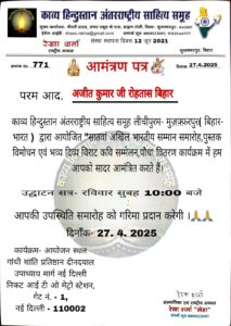 काव्य हिंदुस्तान अंतरराष्ट्रीय साहित्य समूह में भाग लेंगे अजीत कुमार चंद्रवंशी