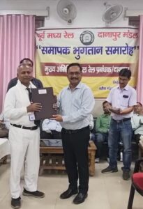 इसमें रेल सेवा से सेवानिवृत्त उपस्थित कर्मचारियों को मंडल रेल प्रबंधक, दानापुर, जयंत कुमार चौधरी द्वारा अंगवस्त्र एवं समापक भुगतान दस्तावेजों को देकर सम्मानित करते हुए भावभीनी विदाई दी गई ।