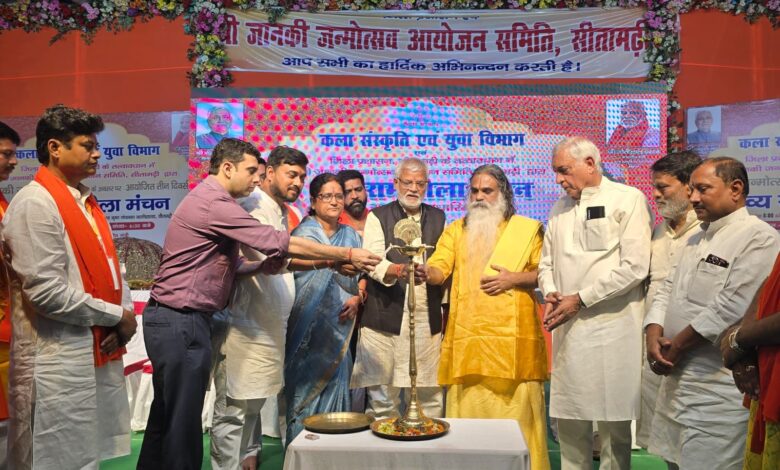 सीतामढ़ी: दिनांक 4 मई 2025: जानकी जन्मोत्सव—2025 के अवसर पर कला, संस्कृति एवं युवा विभाग बिहार सरकार एवं जिला प्रशासन के तत्वाधान में श्री जानकी जन्मोत्सव आयोजन समिति के द्वारा शहर के श्री राधा कृष्ण गोयंका महाविद्यालय के खेल मैदान में भव्य रामलीला का मंचन किया जा रहा है।