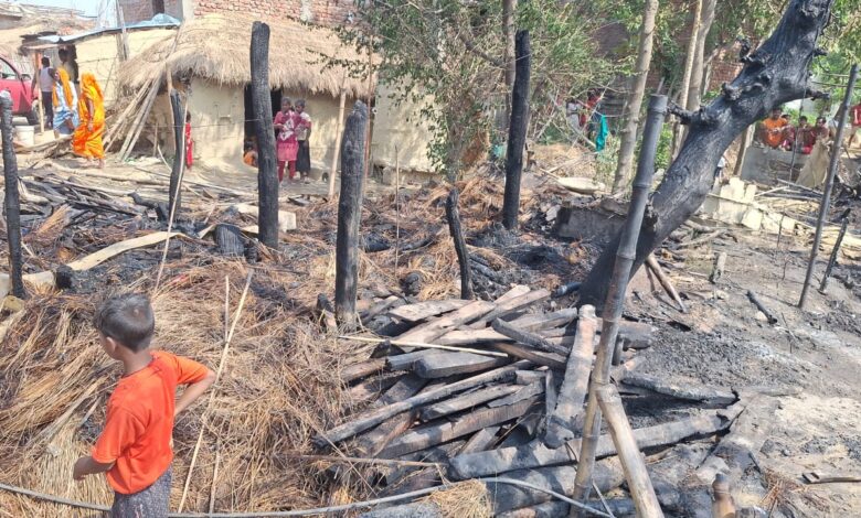 आग से नौ घर सहित लाखों की संपत्ति खाक, लिपनी बिन टोली की घटना