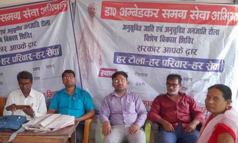 दावथ (रोहतास ) कल्याण विभाग बिहार सरकार के द्वारा “डा भीम राव अंबेदकर समग्र सेवा अभियान” के तहत शनिवार को प्रखंड क्षेत्र के सेमारी, सहिनाव, दावथ, डेढ़गांव पंचायत के महादलित टोला में सरकार आपके द्वार कार्यक्रम के द्वारा विशेष विकास शिविर का आयोजन किया गया।