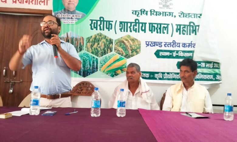 दावथ (रोहतास): प्रखंड स्तरीय खरीफ महाभियान 2025 का आयोजन बुधवार को प्रखण्ड कार्यालय स्थित ई किसान भवन के सभागार में किया गया। खरीफ महाभियान में फसल उत्पादन की नवीनतम तकनीक सिखाया गया।