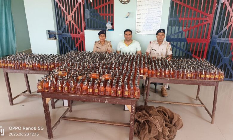 सीमा से नेपाल निर्मित शराब की भारी मात्रा में बोतलें जप्त