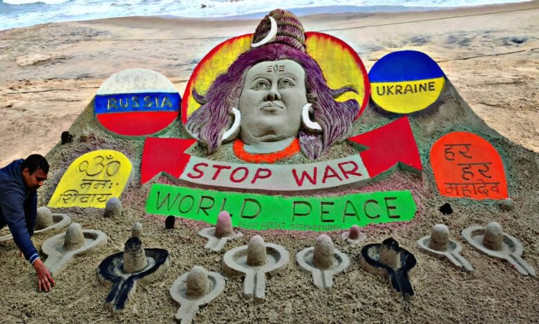 वही इस युद्ध को रोकने के लिए भगवान शिव से गुहार लगाते हुए सैंड आर्टिस्ट मधुरेंद्र ने कहा कि रूस और यूक्रेन के बीच शांति की सारी कोशिशें नाकाम होती दिख रही हैं। 24 फरवरी 2022 को रूस द्वारा यूक्रेन पर किया गया पूर्ण आक्रमण के बाद दोनों देशों के बीच जंग आज भी जारी हैं।