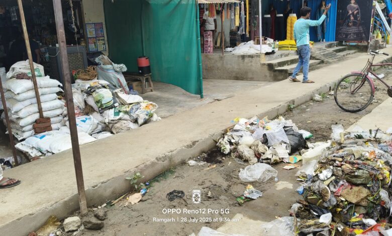 रामगढ़ बाजार में कचरा को जगह-जगह डंप करने से बाजार व्यवसायी परेशान