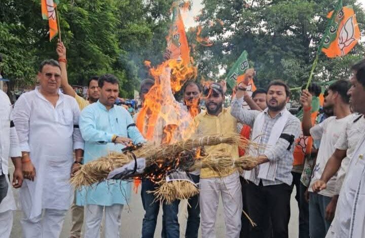 इंडिया गठबंधन द्वारा अभद्र भाषाओं के लिए राहुल गांधी और तेजस्वी यादव का किया गया पुतला दहन