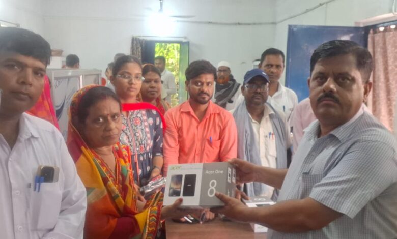 प्रधानाध्यापक और शिक्षकों के बीच किया गया टेबलेट वितरण