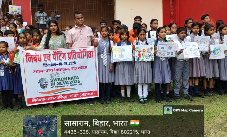 नोखा गुरुवार को स्वक्छता ही सेवा है को जागरूकता हेतु बच्चों को पेंटिंग, लेख प्रतियोगिता उच्च माध्यमिक विद्यालय पश्चिमी पट्टी गढ नोखा में आयोजित किया गया।