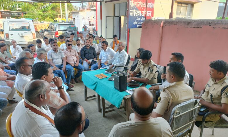 दुर्गा पूजा को लेकर नोखा थाना परिसर में शांति समिति की हुई बैठक