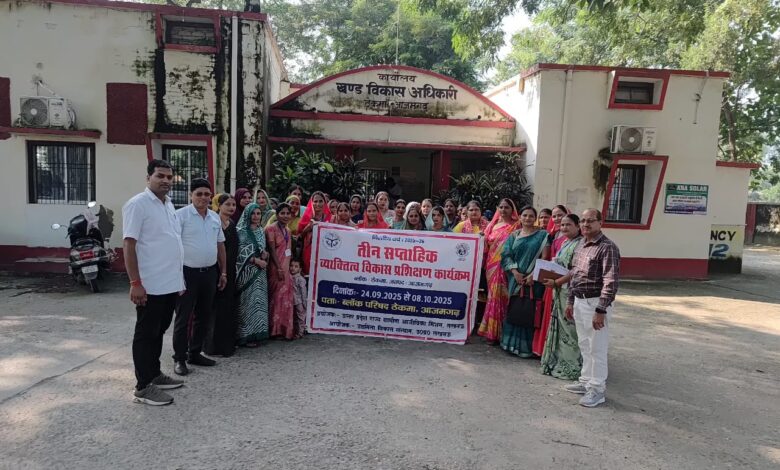 आजमगढ़ जिले के ठेकमा विकास खंड में स्वयं सहायता समूह (एस.एच.जी) की 30 महिलाओं ने ब्लॉक मिशन प्रबंधक डॉ. अभिषेक कुमार के मार्गदर्शन में 15 दिवसीय व्यक्तित्व विकास प्रशिक्षण कार्यक्रम को सफलतापूर्वक पूरा किया।