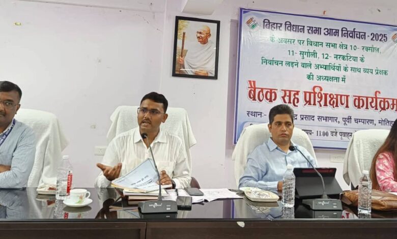 मोतिहारी: भारत निर्वाचन आयोग नई दिल्ली द्वारा नियुक्त पुलिस प्रेक्षक एवं 21-ढाका विधानसभा निर्वाचन क्षेत्र के सामान्य प्रेक्षक की अध्यक्षता में निर्वाची पदाधिकारी ढाका विधानसभा निर्वाचन क्षेत्र सह अनुमंडल पदाधिकारी श्री साकेत कुमार की उपस्थिति में ढाका विधानसभा क्षेत्र निर्वाचन क्षेत्र की तैयारी की समीक्षा अनुमंडल सभागार ढाका में की गई।