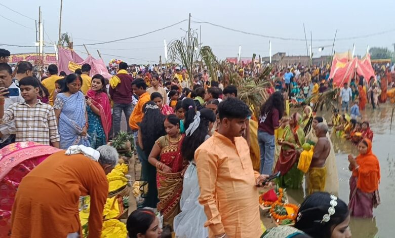 लोक आस्था का महापर्व छठ का व्रतियों ने उदयमान सूर्य को दिया अर्घ्य