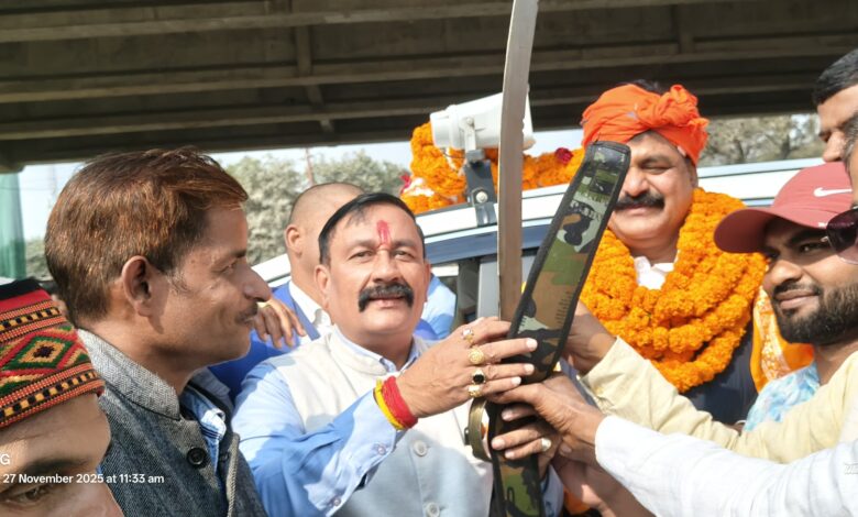 भाजपा नेता पिंटू सिंह के नेतृत्व में बड़ी संख्या में जुटे एनडीए कार्यकर्ताओं ने मंत्री जमा खान का गर्मजोशी से स्वागत किया। समर्थकों ने उन्हें फूल-मालाएँ पहनाईं और तलवार भेंट कर सम्मानित किया।