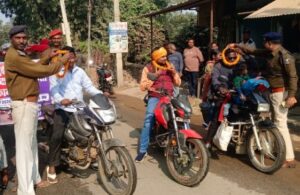 जिसमें दोपहिया वाहन चालकों को ट्रिपल लोडेड सवारी एवं बिना हेलमेट पहने सफर करने वाले चालकों को नसीहत देते हुए उन्हें फुल माला पहनाकर जागरूक किया गया ।