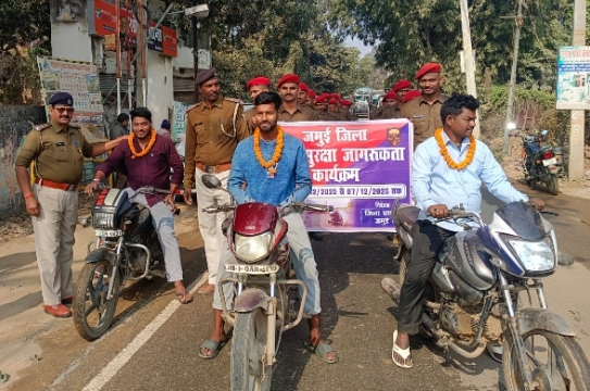 पुलिस द्वारा दोपहिया वाहन चालकों के बीच किये गये इस अनुठी पहल से कई समाज सेवियों ने उनकी काफी प्रशंसा करते हुए बधाई और शुभकामनाएं दी । सोनो थाना अध्यक्ष धर्मेंद्र कुमार ने बताया कि पुलिस अधीक्षक जमुई के निर्देश पर सात दिवसीय सडक सुरक्षा जागरूकता कार्यक्रम चलाया गया है ।