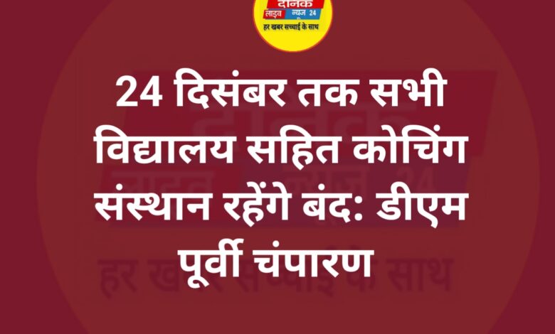 अतः जिला प्रशासन, पूर्वी चंपारण द्वारा यह निर्णय लिया गया है कि जिले के सभी सरकारी एवं निजी विद्यालयों, आंगनबाड़ी केंद्रों तथा कोचिंग संस्थानों में संचालित शैक्षणिक गतिविधियां दिनांक 24.12.2025 तक पूर्णतः प्रतिबंधित रहेंगी।