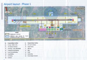 परियोजना की वर्तमान स्थिति के अनुसार, ओएलएस सर्वेक्षण में चिन्हित बाधाओं को हटाने हेतु डीजीसीए-एएआई से अनुरोध किया जा चुका है। इसके साथ ही ऑब्स्टेकल के स्वामित्व की पहचान की जा रही है।