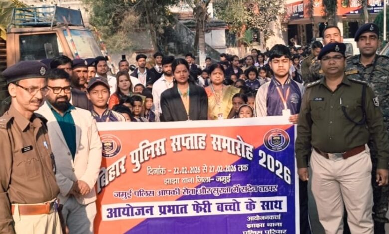 अनुमंडल पुलिस पदाधिकारी राजेश कुमार झाझा द्वारा अंतर विधालय प्रतियोगिता का शुभारंभ पब्लिक स्कूल झाझा में किया गया है । बिहार पुलिस के द्वारा दिनांक 22 फरवरी से 27 फरवरी 2026 तक चलने वाली पुलिस सप्ताह के शुभ अवसर पर आयोजित इस प्रतियोगिता में झाझा अनुमंडल छेत्र के सभी सरकारी और गैर सरकारी विधालय के बच्चे भाग ले रहे हैं ।