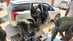 गुप्त सूचना के आधार पर की गई इस विशेष छापेमारी के दौरान दो लग्जरी कारों को रोका गया, जिनकी तलाशी लेने पर कुल 1513 बोतलें अंग्रेजी शराब बरामद की गईं। मापी करने पर जब्त शराब की कुल मात्रा लगभग 625 लीटर पाई गई है।
