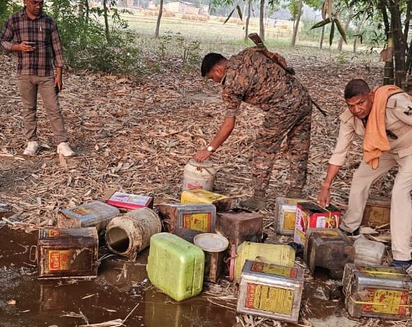 बैरगनिया पुलिस को मिली बड़ी कमयाबी, 300 लीटर अवैध शराब नष्ट