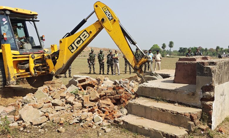 नक्सलियों द्वारा बनाए गए अवैध स्मारक को किया गया ध्वस्त