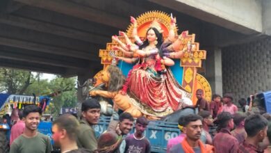 श्रद्धालुओं ने नम आंखों से मां दुर्गा की प्रतिमा का किया विसर्जन