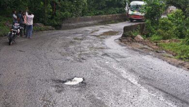 पांच वर्षों पूर्व से सडक गडढे मे तब्दील, दुर्घटना होने की प्रबल संभावना
